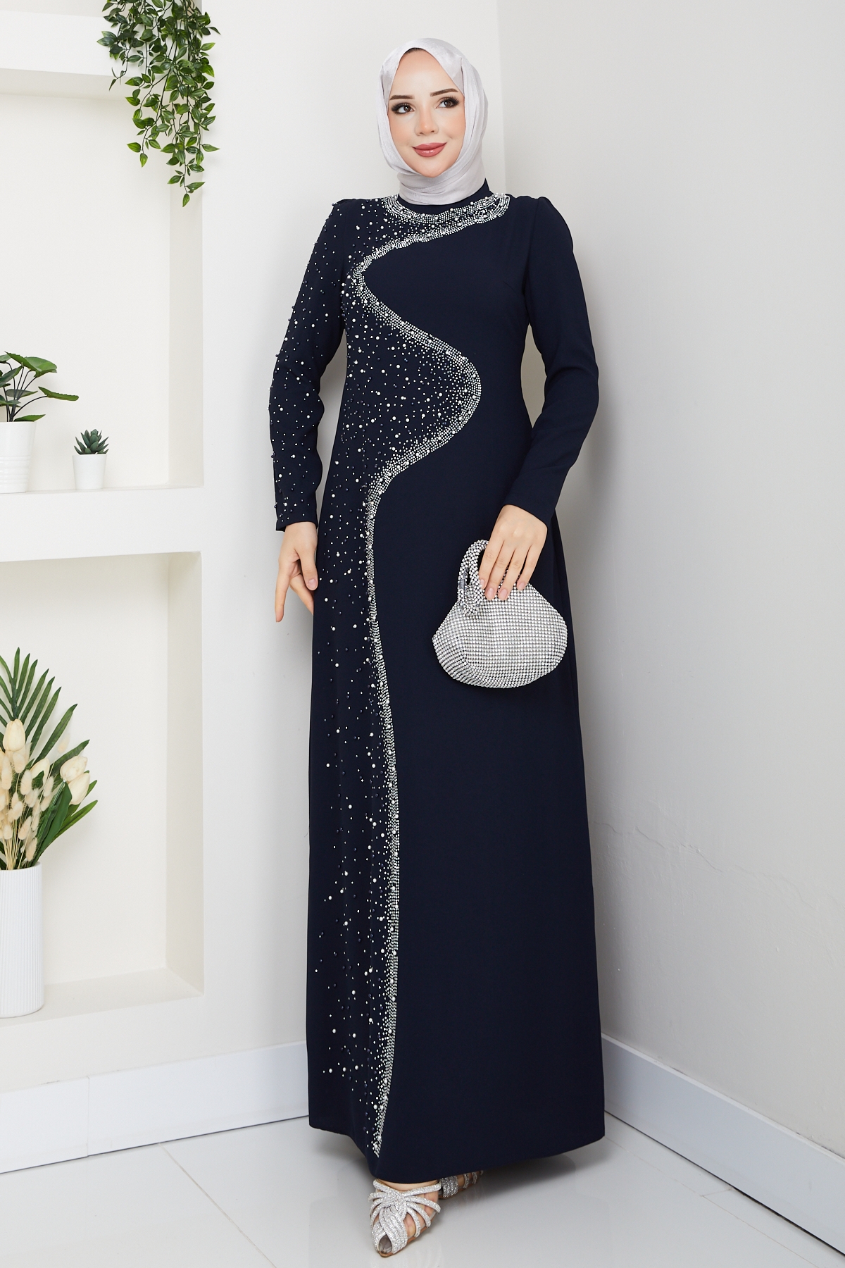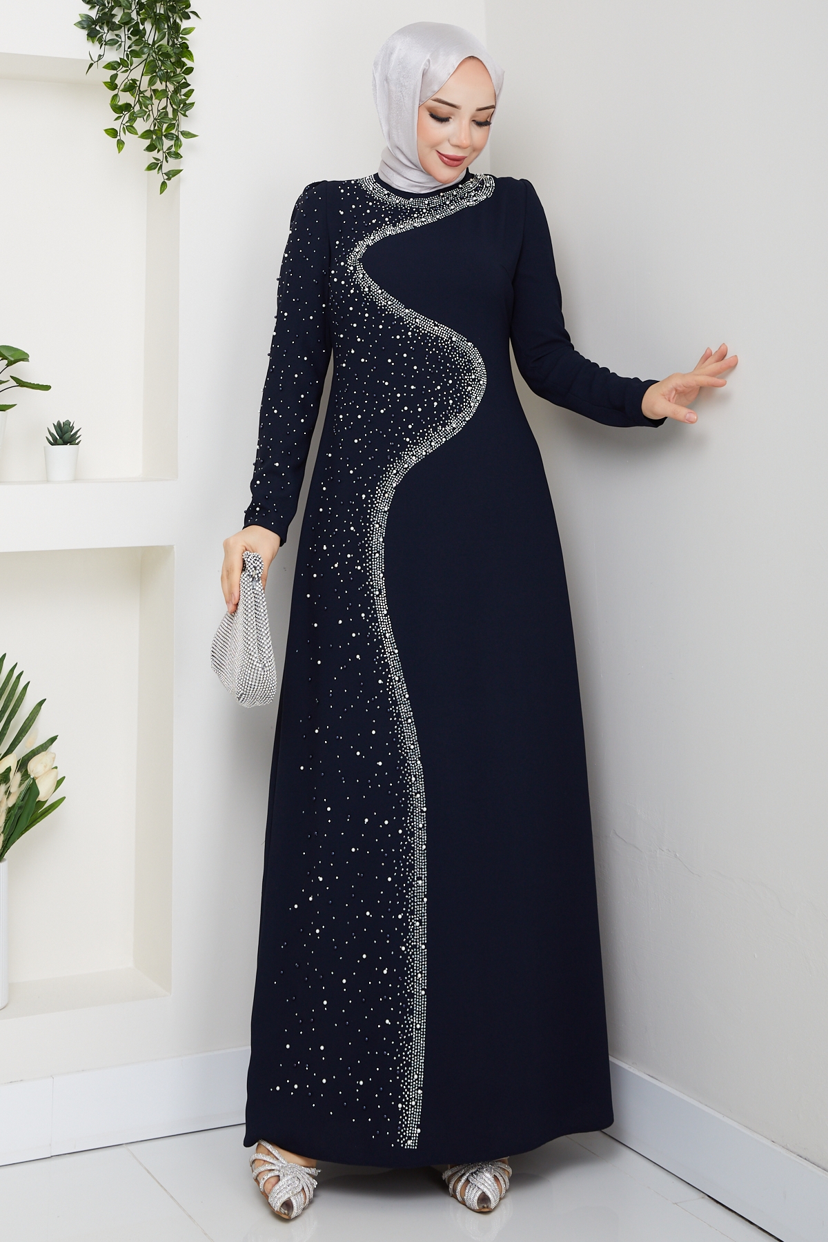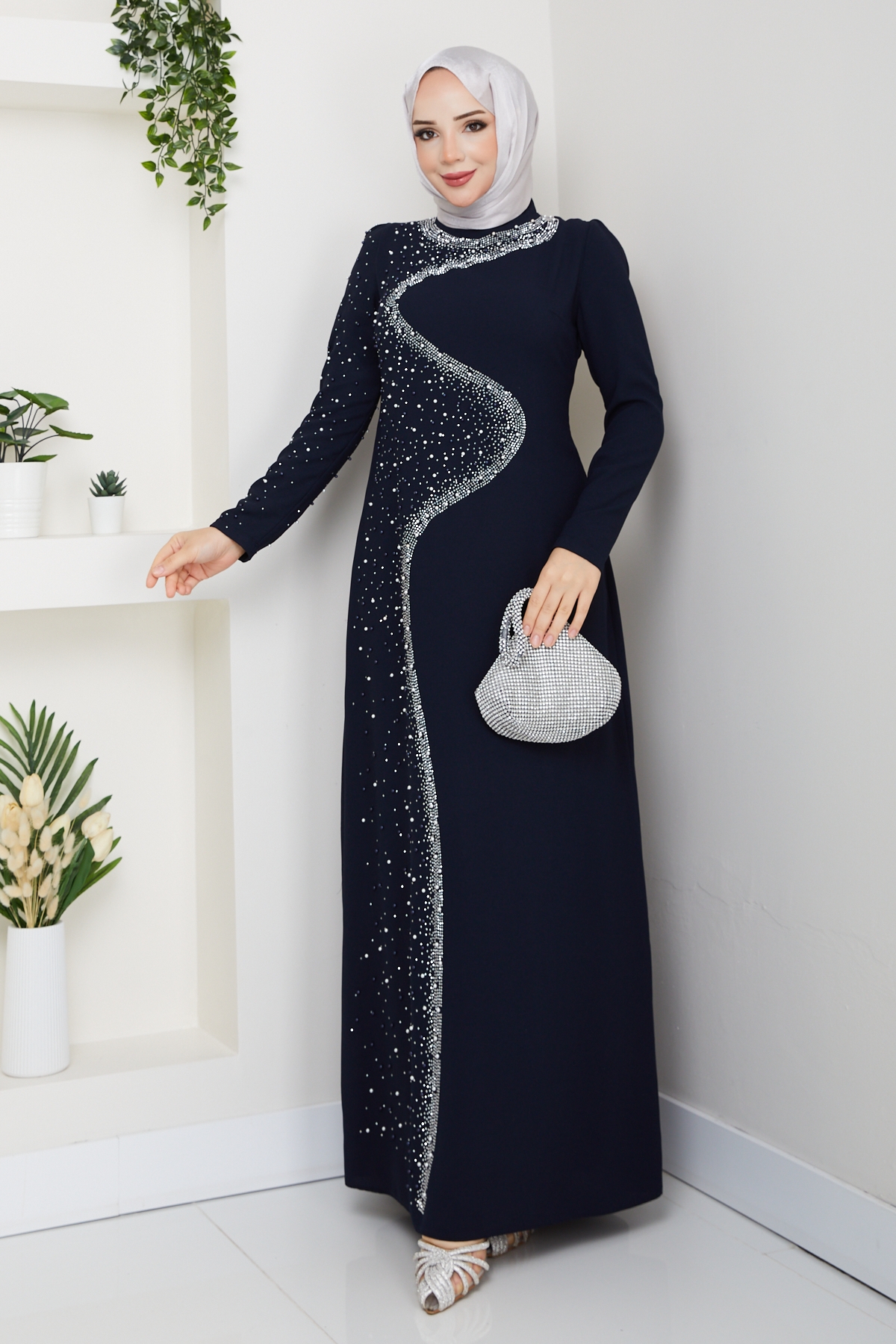 Dicle Tesettür Abiye Elbise - Lacivert