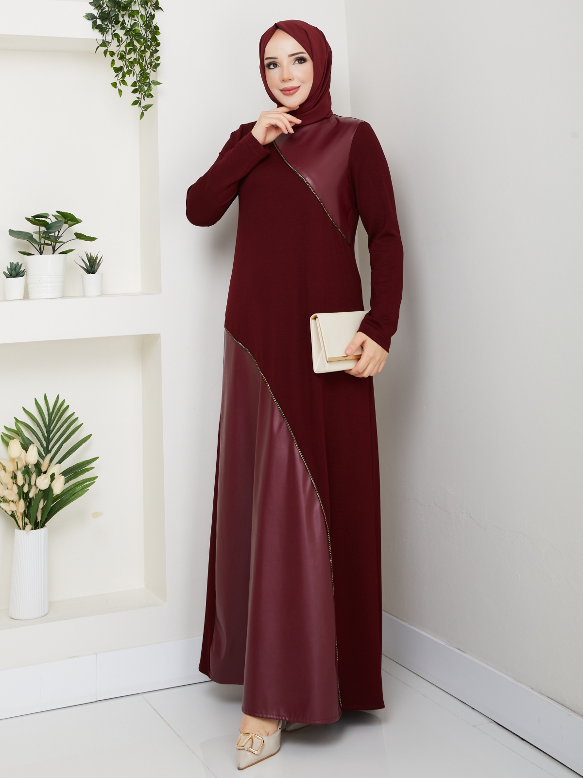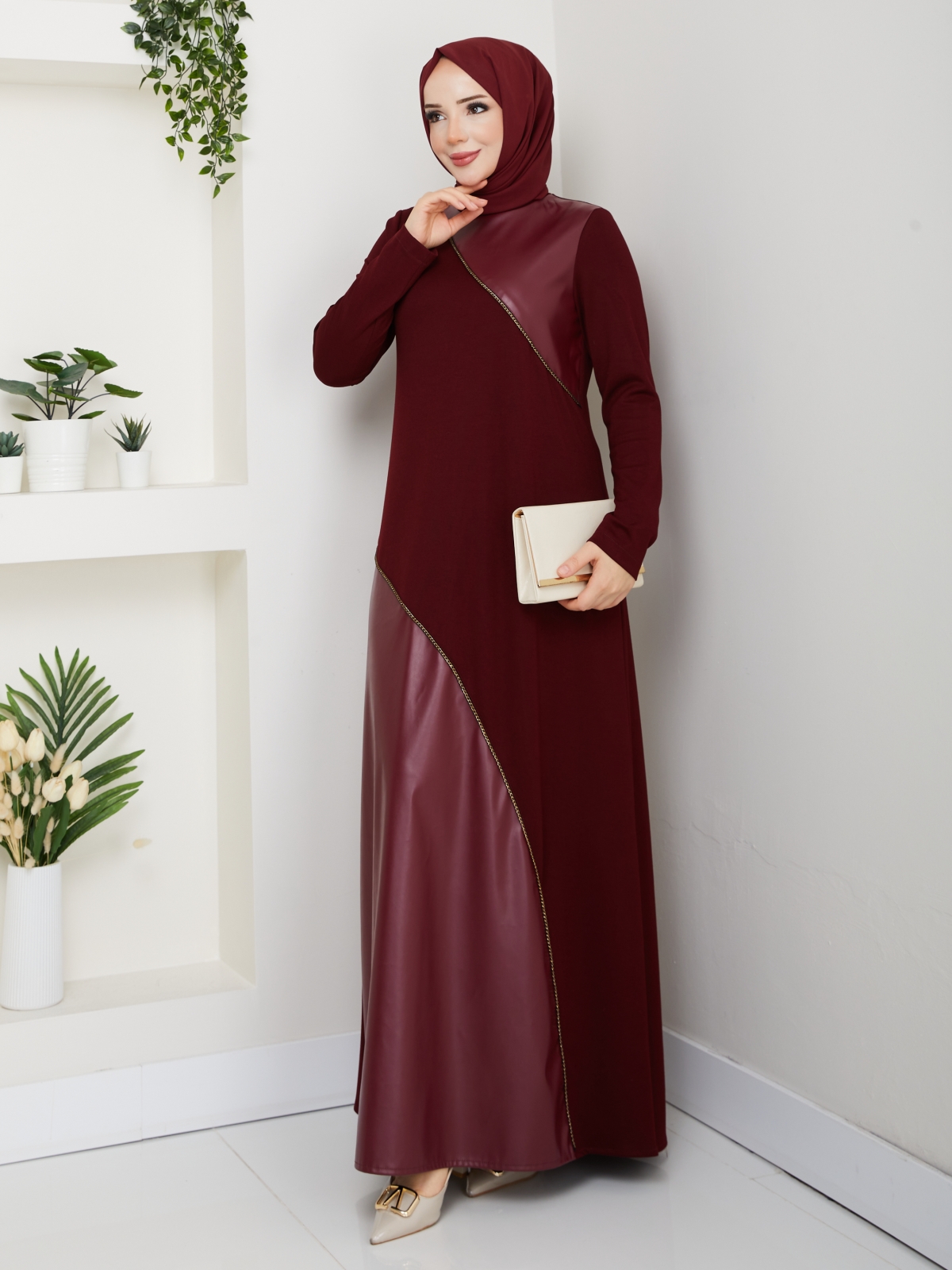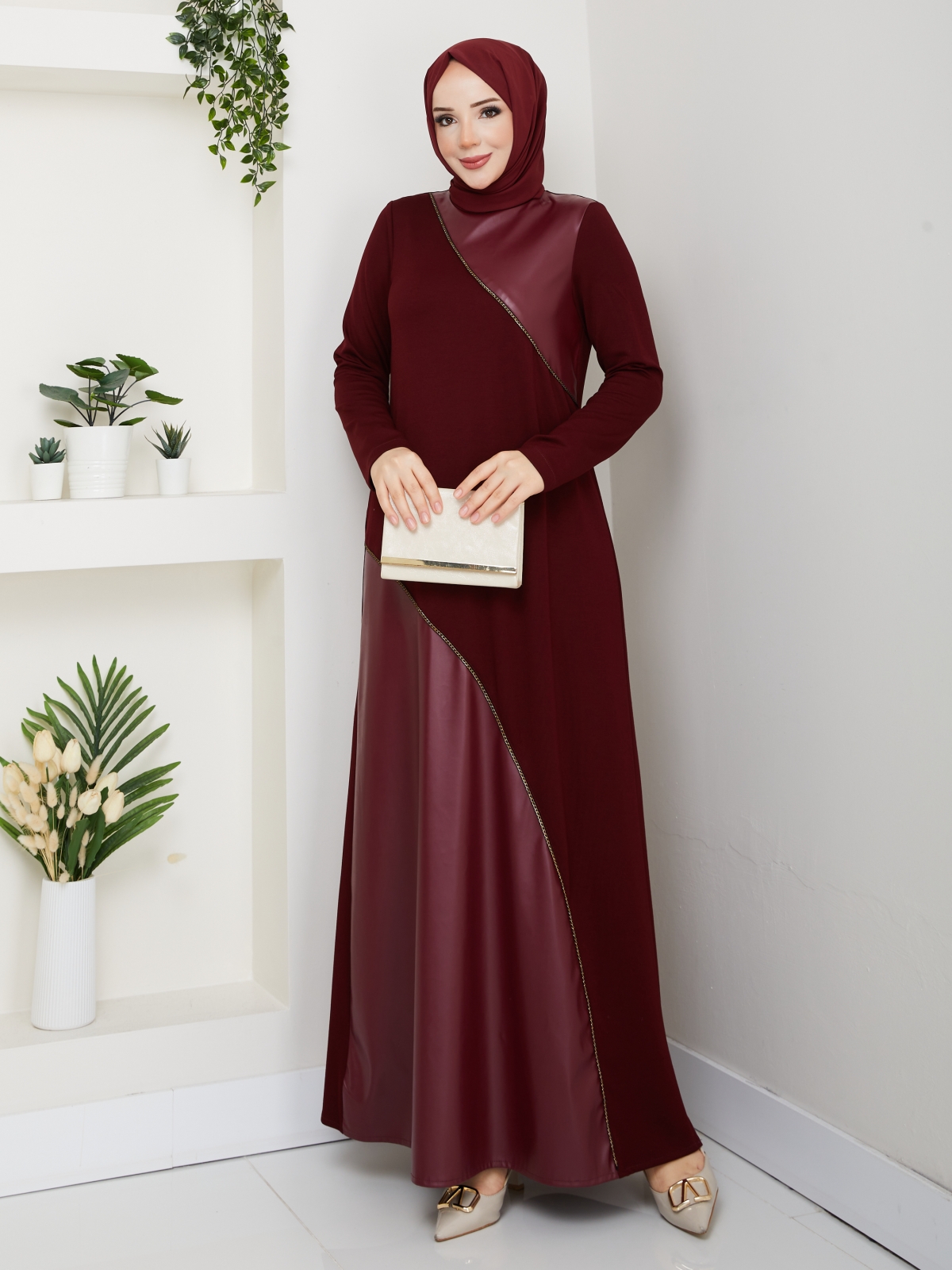 Dilber Tesettür Elbise - Bordo
