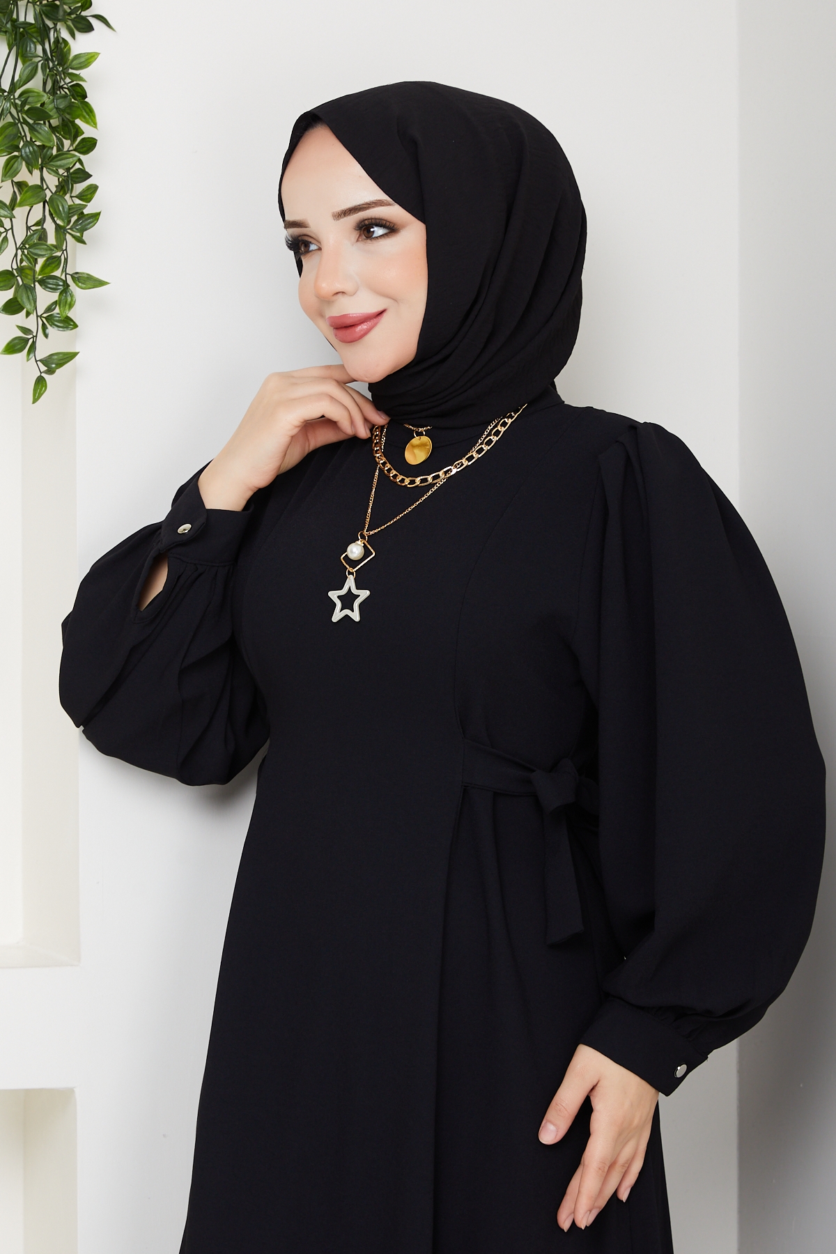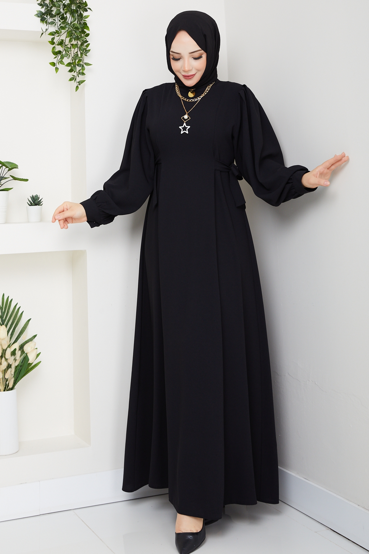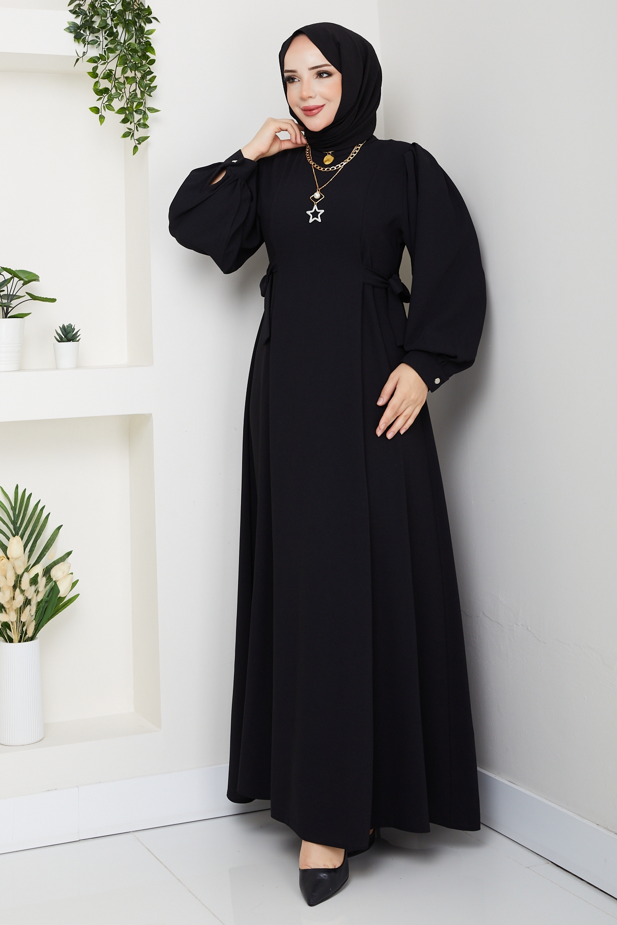 Nevra Tesettür Elbise - Siyah